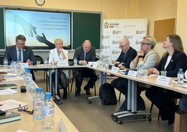 Мероприятие приурочено к знаменательной дате - 15-летию принятия Закона Республики Карелия «Об Уполномоченном по правам ребёнка в Республике Карелия». Участники круглого стола обсудили широкий круг вопросов: от взаимодействия института Уполномоченного с различными структурами до актуальных вызовов в воспитании детей. Ключевые спикеры и темы выступлений: Ольга Николаевна Шмаеник, заместитель Председателя Законодательного Собрания Республики Карелия, рассказала о региональных законах, регулирующих поддержку семей с детьми. Геннадий Александрович Сараев, Уполномоченный по правам ребёнка в Республике Карелия, обозначил ключевые задачи Уполномоченного - формулирование интересов ребёнка и продвижение интересов детства. Наталья Владимировна Кармазина, Министр образования и спорта Республики Карелия, осветила вопросы взаимодействия министерства с Уполномоченным, а также затронула важные темы: детская тревожность, деструктивное поведение подростков, ответственность родителей и образовательных организаций, повышение квалификации педагогов. Александр Владимирович Баталин, заведующий кафедрой государственного права Карельского филиала РАНХиГС, поделился опытом работы юридической клиники, в том числе в рамках взаимодействия с Уполномоченным в части совместного участия в судебном заседании по трансграничному спору. Наталья Сергеевна Ермишина, директор Института экономики и права ПетрГУ, рассказала о совместной работе юрклиники и Уполномоченного, правовом просвещении и работе с отдаленными районами республики. Олег Игоревич Кулагин, директор Института педагогики и психологии ПетрГУ, выступил с докладом о подготовке будущих педагогов и психологов, о взаимодействии с Уполномоченным и создании Центра психологической поддержки студентов. Представители некоммерческих организаций поделились успешными практиками поддержки семей и детей: РОО «Карельский Союз защиты детей», руководитель Мария Пячиц представила проекты «Траектория успеха», «Семейный компас» и программу «Наставничество», в рамках которой подростки из центров помощи детям развивают социально-бытовые и другие навыки. КРОО «Гармония», руководитель Марина Фомина рассказала о результатах работы по сопровождению семей с алкогольной зависимостью и замещающих семей в Пудожском районе. Благотворительный фонд имени Арины Тубис, руководитель Юлия Филиппова рассказала о деятельности фонда и о некоторых ярких социальных инициативах: мотоэкскурсия «Под парусом свободы», «Шайба добрых дел», «Больничный патруль радости» совместно с МЧС и др.